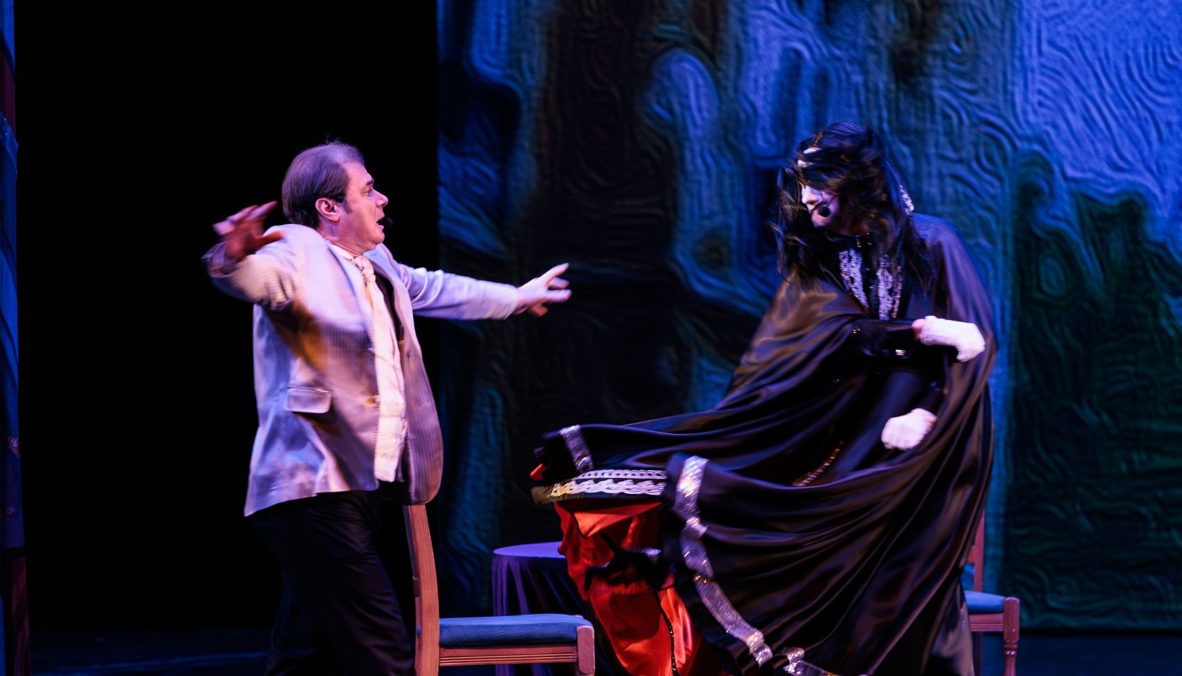 Фантом, призрак «Парижской оперы», он же Эрик — лауреат международных конкурсов, солист театра Музыкальной комедии Игорь Шумаев, Олег Корж — солист театра Музыкальной комедии, актёр театра и кино.